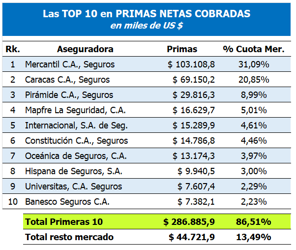 Share de Mercado (%): Participación de la Prima Neta Cobrada sobre el total de la Prima del Mercado Venezolano.