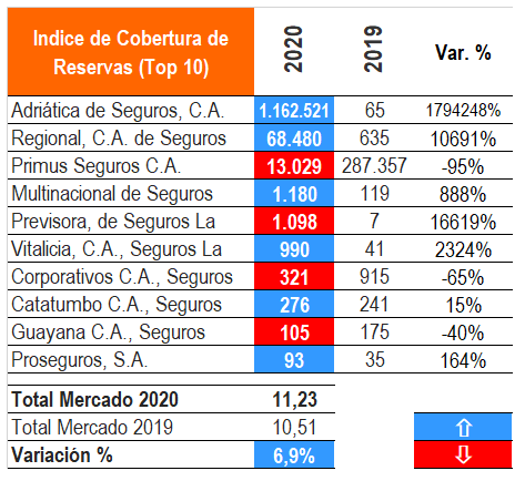 Índice de Cobertura de Reservas: El Índice de Cobertura de Reservas es equivalente al cociente entre las Inversiones Aptas para la Representación de las Reservas Técnicas (Cuenta 201) y las Reservas Técnicas (Cuenta 401). Si el índice es mayor o igual que 1, hay suficiencia de cobertura. Habrá insuficiencia de cobertura si el índice es menor que uno.
